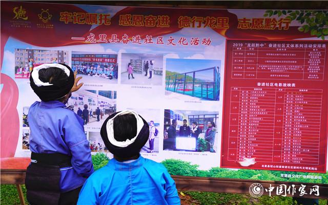 易地搬遷群眾查看“奮進社區(qū)”近日的文化活動