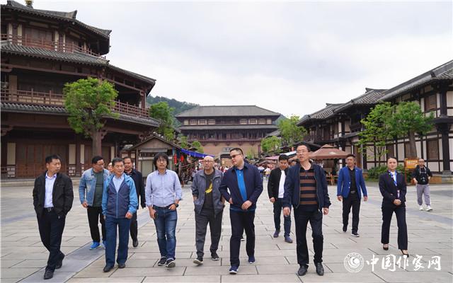 采訪團在都勻秦漢影視城考察當?shù)匚幕a(chǎn)業(yè)