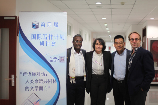 中外作家合影(左起:吉布提作家切赫?瓦塔,保加利亞作家茲德拉夫科?伊蒂莫娃,中國(guó)作家徐則臣,澳大利亞作家馬克?特里尼克)