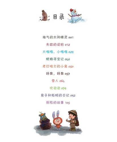 在他們之間,發(fā)生著各種奇妙的、有趣的、常常出乎意料的故事。有的令人忍俊不禁,如《水怪嗶阿噗》;有的讓人虛驚一場,如《長鼻怪和膽小鬼》;有的情感脈脈暖如春日,如《彩色的樹葉裙》;有的則親情雋永,令人回味,如《戴耳套的小兔》。