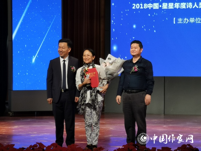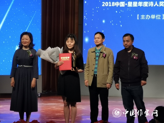 嘉賓為年度詩人獎(jiǎng)獲得者馬莉頒獎(jiǎng)