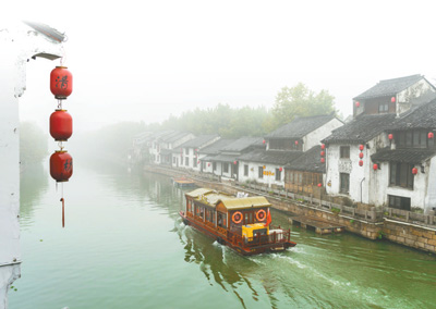 雨霧中的江蘇無(wú)錫清名橋古運(yùn)河水弄堂。 資料圖片