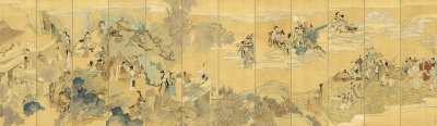 在題材選取方面,如海派代表畫(huà)家任伯年常畫(huà)《群仙祝壽圖》《松鶴圖》《鐘馗捉鬼圖》等民間喜聞樂(lè)見(jiàn)的傳統(tǒng)祥瑞題材,其畫(huà)中歷史人物、文學(xué)故事、釋道神仙,乃至市井小民的人物形象,以俗為雅、以俗為新。用筆豐富,精描、細(xì)勾,沒(méi)骨、渲染等多種筆法共用。人物造型多用變形與夸張手法,以凸顯圖中人物的性格和喜劇效果,如他所畫(huà)《壽星捧桃》中的壽星形象頗奇特,壽眉垂直豎長(zhǎng),光禿額頂高聳如山。畫(huà)中人物的夸張變形能與現(xiàn)代日常生活中人物的動(dòng)作緊密相結(jié)合,畫(huà)家常以現(xiàn)實(shí)生活中的人為模特作畫(huà),使畫(huà)中的神仙也附帶上了市井俗人的現(xiàn)實(shí)性,在神-人之間造成相互關(guān)聯(lián)與對(duì)比。任伯年畫(huà)神仙圖,圖中神仙抱膝獨(dú)坐的姿勢(shì)就是凡人常見(jiàn)的,其閉目養(yǎng)神也是俗人之態(tài)。如此,天上與人間、神仙與凡人之間就無(wú)隔閡了。