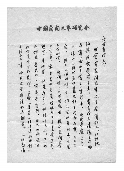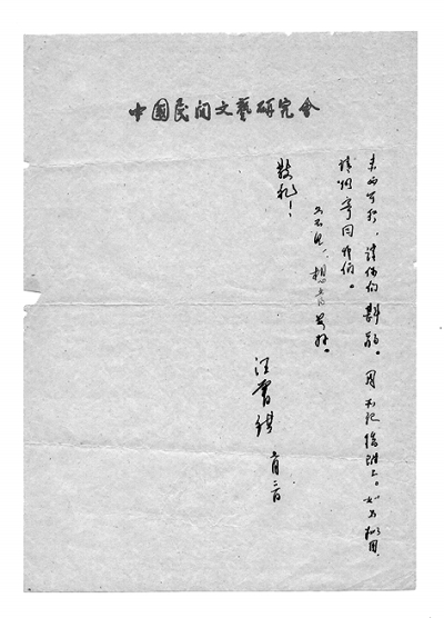 1955年2月,汪曾祺從北京市文聯(lián)調到中國民間文藝研究會工作,參與籌備《民間文學》;4月,雜志創(chuàng)刊。1958年年底,汪曾祺被下放到張家口沙嶺子農業(yè)科學研究所勞動。以此判斷這封信當寫于1955—1958年,基本可以斷定是1958年。