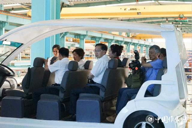 短短幾天的采訪行程緊湊而充實,作家們深入經(jīng)濟生產(chǎn)第一線,對社會生產(chǎn)發(fā)展有了更深層次的了解。作家朱山坡被朝著世界最先進科技奮勇直前的科技工作者的默默耕耘、舍我其誰的精神感染,“他們讓我親眼看到了時代之光、民族之魂,是文學(xué)書寫的最好對象。他們將會在我的筆下出現(xiàn),在我的作品里發(fā)光?!弊骷已f,這次采風(fēng)讓大家深入生產(chǎn)一線了解先進人物的不凡事跡,見證了共和國成立70年來取得的成就。他深刻感受到,作家的雙腳要牢牢踏在大地,讓靈感的種子在現(xiàn)實生活的土壤中萌發(fā),作家的創(chuàng)作要追求高境界、大格局,以世界眼光書寫家國情懷,以全球眼光關(guān)懷人類命運。作家紀紅建在新時代造船廠看著一艘艘大型油船時,想到這些船已經(jīng)或即將從這里起航,遠銷歐、亞、美等國家和地區(qū),他感覺自己觸摸到了新中國成立70年來的巨大變化,也深刻感受著新時代中國制造的豪邁,更感受到了奮勇拼搏、銳意創(chuàng)新的中華民族精神數(shù)千年來的傳承。