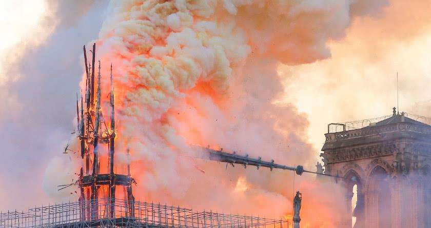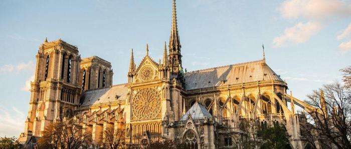 側(cè)面的巴黎圣母院在2019年經(jīng)歷大火,主體的石基部分保存完好,但屋頂不幸罹難,被燒去了部分。(圖片來(lái)自網(wǎng)絡(luò))