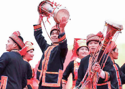 佳瑤合作社瑤胞們在表演自治區(qū)級非物質文化遺產(chǎn)長鼓舞(資料圖片)