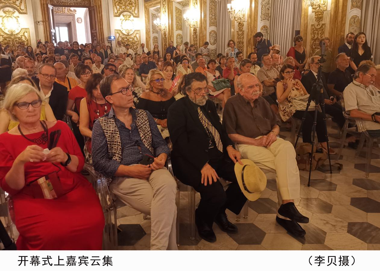 中國駐意大利佛羅倫薩領(lǐng)事館總領(lǐng)事王文剛、意大利藝術(shù)研究院院長克麗絲蒂娜?阿齊蒂尼、佛羅倫薩廣域市市長代表蒙緹契尼、佛羅倫薩市商務(wù)局局長加納西、德比安科藝術(shù)基金會秘書長科琳娜、中藝國際主席張修中、佛羅倫薩美術(shù)學(xué)院院長羅卡、佛羅倫薩學(xué)院美術(shù)館館長浩樂拜格、托斯卡納大區(qū)辦公廳主任貝卡第里、Le Murate當(dāng)代藝術(shù)中心主任華倫提拉、意大利Mandragora出版社社長馬里奧、卡比澤納貴族酒莊莊主菲利普、托斯卡納Frescobaldi酒莊總經(jīng)理瑪尼尼,等400余位政界、藝術(shù)界、新聞界的嘉賓出席了開幕式。