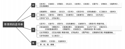 李清照的作品流傳下來的并不多,但是在文學(xué)史上卻有著舉足輕重的地位。她的別集自宋代已有刊行。由于散佚、存疑的較多,李清照現(xiàn)存的詩、詞、散文等作品的數(shù)量,尚未有定論,但經(jīng)過現(xiàn)代學(xué)者多方考證,大家比較認可的李清照傳世作品有詞五十七首(包括存疑十四首)、詩三十一首(包括失題者)、文八篇(包括殘文)(王仲聞《李清照集校注》)。根據(jù)李清照傳世作品中的用典、引用與相關(guān)論述,可梳理出李清照的讀書單。從她的讀書單中可以看出,博覽群書是這位才女形成的關(guān)鍵因素,其閱讀視野遍及經(jīng)史子集,學(xué)術(shù)視野與格局遠超出了同時代的一般女子,她的讀書偏好、性情、思想都可以從中找到答案。