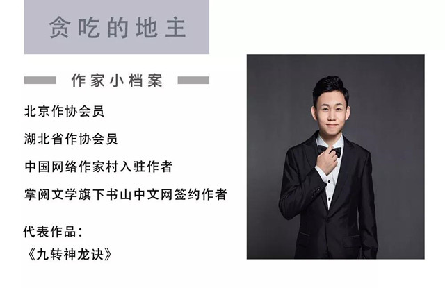 2017年初,他的首部玄幻作品——《九轉(zhuǎn)神龍?jiān)E》引發(fā)追捧,貪吃的地主火了。