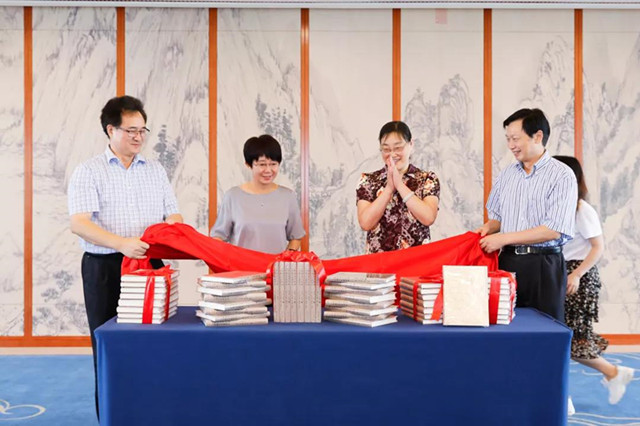 劉東、吳笛、張冰和聶珍釗教授為《外國文學(xué)經(jīng)典生成與傳播研究》出版面世剪彩。