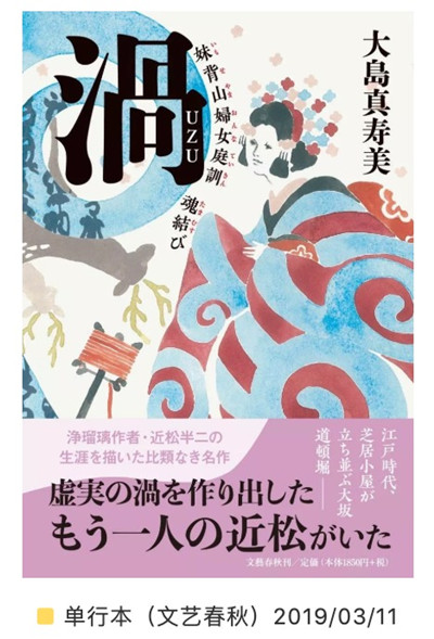 第161屆直木獎 獲獎作品是《渦——妹背山婦女庭訓魂結(jié)》 ,作者大島真壽美。小說講述凈瑠璃作者近松半二波瀾壯闊的一生,江戶時代,大阪道頓堀,天姿聰穎的近松半二被酷愛凈瑠璃的父親帶入了戲棚,從此與凈瑠璃結(jié)緣。從父親手里,他接過了近松門左衛(wèi)門流傳下來的硯臺,由此開啟創(chuàng)作之路。他也曾被年少好友兼競爭對手的并木正三所超越,曾被凈瑠璃大師吉田文三郎責罰,但近松半二無法停下創(chuàng)作的步伐。經(jīng)過漫長歲月,《奧州安達原》《妹背山婦女庭訓》等名作終于橫空出世?!澳怨P尖滴落,最終,我也化作了文字……”日本讀者評論這本書時說道:“描寫凈瑠璃作家近松半二一生的力作,可以從中感受到江戶時代大阪熱騰騰的煙火氣撲面而來。讀完后有點明白了歌舞伎和人形凈瑠璃的區(qū)別,不過還是有很多get不到的點,果然還是要親自去現(xiàn)場看了才能明白吧?!?/p>