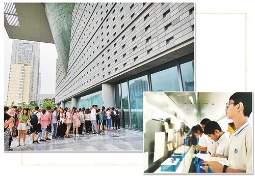 左圖 在首都博物館門前排隊(duì)等待入館的參觀者。 下圖 帶著博物館任務(wù)單來(lái)參觀的學(xué)生。廉 丹攝