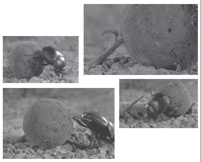 全片并沒有一個(gè)貫穿始終的故事,而是由不同昆蟲的生活情節(jié)構(gòu)成。最為人所津津樂道的是屎殼郎推糞球的段落(圖1):一只屎殼郎辛苦地推著糞球過來,礙于地勢,它不由自主地隨著糞球一起滾下土坡,動(dòng)作讓人發(fā)笑,突然,糞球被推到了一個(gè)小樹杈上,讓人懸起心來,隨后屎殼郎像人一樣,左看右瞧,反過來把糞球推走了。最妙的是最后鏡頭拉出到草地的大場景,讓觀眾不禁遐想勤勞的屎殼郎這一路回家的歷程中還要經(jīng)歷多少次這樣的辛苦場景。人們對(duì)于有開端、發(fā)展、高潮、結(jié)尾的故事,永遠(yuǎn)都樂此不疲,這種對(duì)于昆蟲生存過程中故事情節(jié)化的表達(dá),目前仍在自然紀(jì)錄片中大量運(yùn)用,當(dāng)然這還只是情節(jié)化的表達(dá),更進(jìn)一步者則如《我們誕生在中國》,講述了四川大熊貓、雪豹、川金絲猴完整的故事。