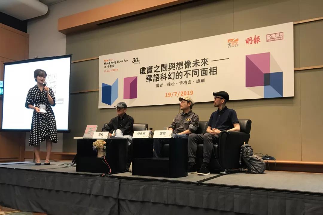 7月19日,韓松、伊格言、譚劍,兩岸三地三位科幻作家,以“虛實(shí)之間與想象未來——華語科幻的不同面相”為主題開展對(duì)話??苹靡舱墙衲甑谌畬孟愀蹠沟哪甓戎黝}。