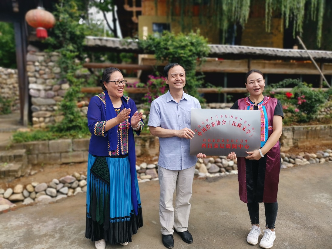 《民族文學(xué)》副主編陳亞軍為《民族文學(xué)》西昌基層創(chuàng)閱中心授牌(李春攝)