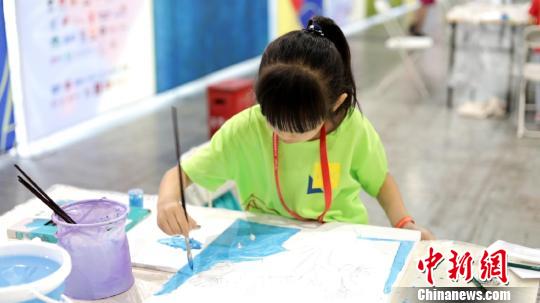 孩子在認(rèn)真地繪制作品。 徐明睿 攝