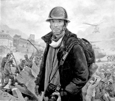 我這次參展作品的最后一幅是《北青報記者在“前線”》。我畫了這么多歷史上的老報人、名記者,也應(yīng)該畫新時期的年輕新聞人。所以畫了汶川大地震,北青報記者崔峻在震中映秀鎮(zhèn)的工作狀態(tài)。以“前線”命名還是同事楊信的提議,新聞現(xiàn)場之于記者,就是戰(zhàn)士的前線。他還和我打镲,說老焦畫了這么多新聞工作者,就最后一個還活著。