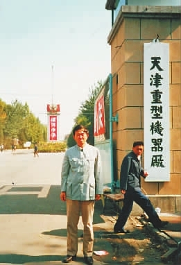 蔣子龍?jiān)谔旖蛑匦蜋C(jī)器廠大門前留影
