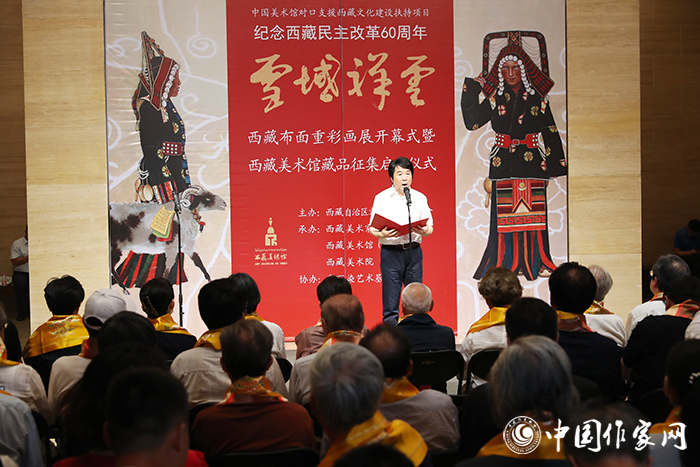 8月15日,由西藏自治區(qū)文聯(lián)主辦,西藏美術(shù)家協(xié)會(huì)、西藏美術(shù)館籌建辦、西藏美術(shù)院承辦,李可染藝術(shù)基金會(huì)協(xié)辦的中國(guó)美術(shù)館對(duì)口支援西藏文化建設(shè)扶持項(xiàng)目:紀(jì)念西藏民主改革60周年“雪域祥云——西藏布面重彩畫(huà)展”開(kāi)幕式暨西藏美術(shù)館藏品征集啟動(dòng)儀式在中國(guó)美術(shù)館舉行。中國(guó)文聯(lián)副主席李前光、馮遠(yuǎn),西藏自治區(qū)政協(xié)副主席、西藏文聯(lián)主席扎西達(dá)娃,中國(guó)美術(shù)家協(xié)會(huì)名譽(yù)主席靳尚誼等80余人出席活動(dòng)并參觀(guān)展覽。