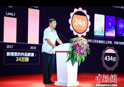 資料圖:此前,第三屆中國“網(wǎng)絡(luò)文學(xué)+”大會開幕式暨高峰論壇在北京舉行,會上發(fā)布《2018中國網(wǎng)絡(luò)文學(xué)發(fā)展報告》。主辦方供圖