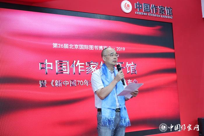 今年是新中國(guó)成立70周年,也是中國(guó)作協(xié)成立70周年。本屆“中國(guó)作家館”以“新中國(guó)文學(xué)70年”為主題。吳義勤在致辭中說(shuō),70年來(lái),我們偉大的祖國(guó)在黨的領(lǐng)導(dǎo)下,一路披荊斬棘、乘風(fēng)破浪,走向輝煌、走向復(fù)興。70年來(lái),中國(guó)文學(xué)與新中國(guó)一路同行,與時(shí)代一同成長(zhǎng),不忘初心、砥礪奮進(jìn),精心描繪廣大人民的奮斗歷程,真情記錄社會(huì)主義中國(guó)發(fā)展變遷,奉獻(xiàn)出一批又一批文學(xué)精品,充分發(fā)揮文學(xué)藝術(shù)引領(lǐng)風(fēng)尚、培根鑄魂的作用。特別是黨的十八大以來(lái),在習(xí)近平新時(shí)代中國(guó)特色社會(huì)主義思想指引下,廣大作家和文學(xué)工作者堅(jiān)持與時(shí)代同步伐,堅(jiān)持以人民為中心,堅(jiān)持以精品奉獻(xiàn)人民,堅(jiān)持用明德引領(lǐng)風(fēng)尚,全身心投入中國(guó)特色社會(huì)主義新時(shí)代,不斷推出精品力作,我國(guó)文學(xué)事業(yè)呈現(xiàn)出百花競(jìng)放、蓬勃發(fā)展的繁榮景象。今年的“中國(guó)作家館”聚焦新中國(guó)文學(xué)70年,就是為了全面總結(jié)新中國(guó)催生新文學(xué)的繁榮發(fā)展歷程,全景展現(xiàn)中國(guó)文學(xué)從新起點(diǎn)邁進(jìn)新時(shí)代取得的輝煌成就,并以此向不斷進(jìn)步、繁榮興盛的中國(guó)文學(xué)致敬,向辛勤耕耘、潛心創(chuàng)作的中國(guó)作家致敬。也期待廣大讀者和文學(xué)愛(ài)好者通過(guò)“中國(guó)作家館”進(jìn)一步增進(jìn)對(duì)中國(guó)當(dāng)代文學(xué)的了解,在閱讀文學(xué)作品的過(guò)程中獲得前行的信心和力量。