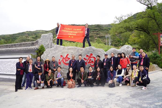 座談會(huì)結(jié)束后,邱華棟向池溝村捐贈(zèng)采訪團(tuán)成員創(chuàng)作和簽名的作品。同時(shí),采訪團(tuán)作家在采訪團(tuán)旗幟上鄭重簽名留念。