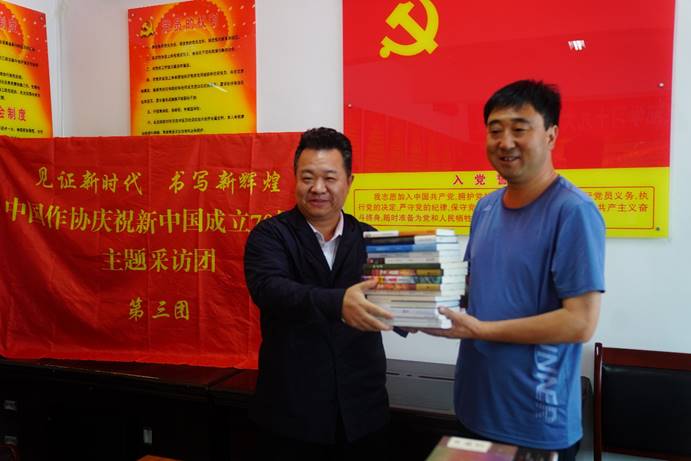 邱華棟代表采訪團(tuán)向池溝村贈(zèng)書(shū)