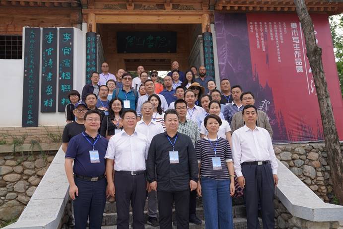 采訪團(tuán)與當(dāng)?shù)馗刹吭谀仙綍?shū)院門(mén)口合影留念