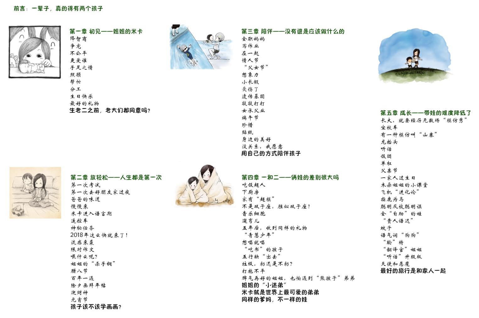 一位建筑師爸爸、編輯媽媽和他們真實、平凡、詩意、快樂、溫暖的二孩生活。全書分為五個章節(jié),含八十則故事,近兩百幅漫畫,六十余幅攝影作品,七篇育兒文章。作者用真實生動的細(xì)節(jié)、詩意幽默的文字、精美的漫畫和攝影作品,不僅為我們展示了一個有愛家庭的鮮活明亮的生活場景和感人的生活細(xì)節(jié)。更為我們提供了全新的家庭教育理念和新穎實用的育兒方法。