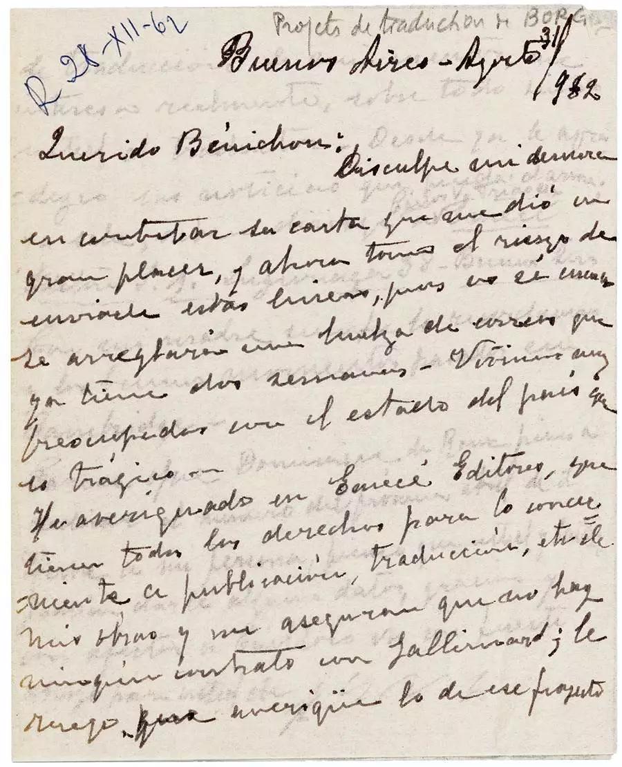 ▲博爾赫斯書信手稿1962,來自蘇富比