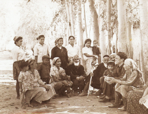 1981年,回到巴彥岱的王蒙(右二)與維吾爾族鄉(xiāng)親們在一起。