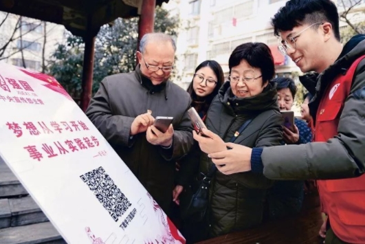 建設“學習強國”學習平臺,是貫徹落實習近平總書記關于加強學習、建設學習大國重要指示精神、推動全黨大學習的有力抓手,是新形勢下強化理論武裝和思想教育的創(chuàng)新探索,是推動習近平新時代中國特色社會主義思想學習宣傳貫徹不斷深入的重要舉措。該平臺自2019年1月1日上線以來,極大地滿足了互聯(lián)網(wǎng)條件下廣大黨員干部和人民群眾多樣化、自主化、便捷化的學習需求。圖為2019年2月25日,江蘇科技大學志愿者在指導老黨員掃描二維碼安裝“學習強國”手機APP。人民圖片供圖 石玉成/攝
