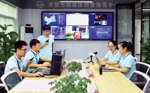 做好新時代宣傳思想文化工作,重點在基層,關鍵在創(chuàng)新。建設縣級融媒體中心,是打通基層宣傳思想文化工作到達群眾“最后一公里”的重要探索。圖為2019年5月19日,湖北赤壁市組織開展“新時代文明實踐 你我同行”活動,“云上赤壁”全程手機直播,赤壁市融媒體指揮調度中心對直播活動進行調度指揮。黃富清/攝