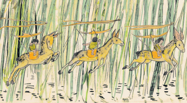 在繪制時,熊亮為了貼合古代的意蘊(yùn),用了水墨加礦物顏料,形成自己的繪畫風(fēng)格,所有的人物和故事都飄逸靈動。