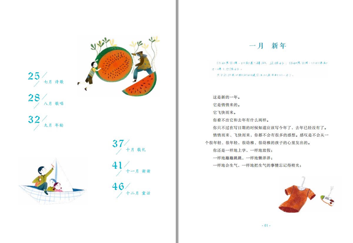 十二個月的時光悄然流逝,訴說著中國孩子在一年生活中的點點滴滴:春節(jié)到來,孩子們張燈結(jié)彩,迎接新年;清明節(jié),孩子們祭奠英雄,寄托哀思;暑假,孩子們揮灑汗水,享受青春;新學(xué)期到了,孩子們下定決心要有一個新的開始;冬雪降落,孩子們感謝親朋給予的一年的溫暖……作者梅子涵以詩一般的語言,選取了從年初到年末的十二個最具特色的生活片段,結(jié)構(gòu)完整,形式活潑,文辭優(yōu)美。孩子在一年的成長中,懂得了愛勞動、愛祖國、感恩師長、努力學(xué)習(xí),也感受到了希望、幸福等積極情感。同時本書邀請了意大利知名插畫家莎拉繪制封面及插圖,優(yōu)美的文字輔以精美的插圖,能夠培養(yǎng)兒童在文學(xué)和美學(xué)方面的能力。