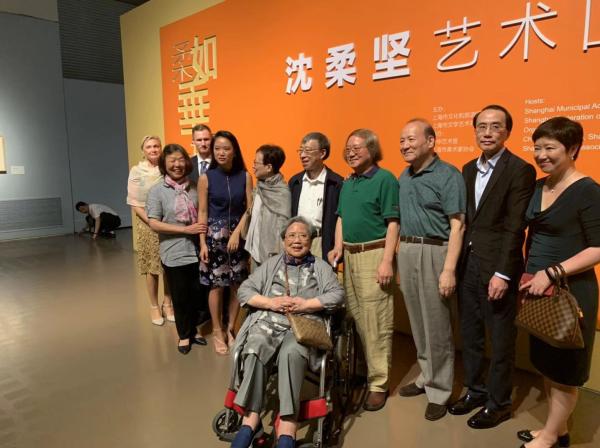 展覽開幕式合影,中為沈柔堅(jiān)妻子王慕蘭