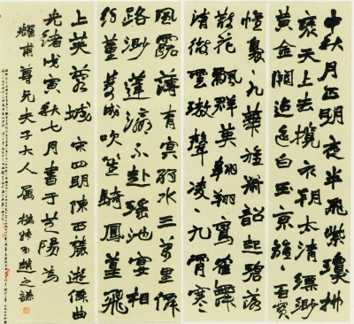 趙之謙《中秋詩(shī)》四條屏,每條縱145厘米,橫37.5厘米。
