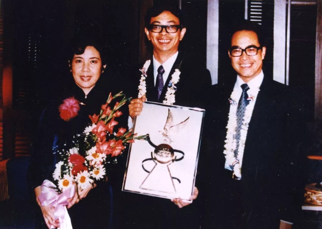 1983年3月,吳貽弓和石方禹(右)、鄭振瑤(左)于馬尼拉,《城南舊事》在第二屆馬尼拉國(guó)際電影節(jié)上獲獎(jiǎng)后合影