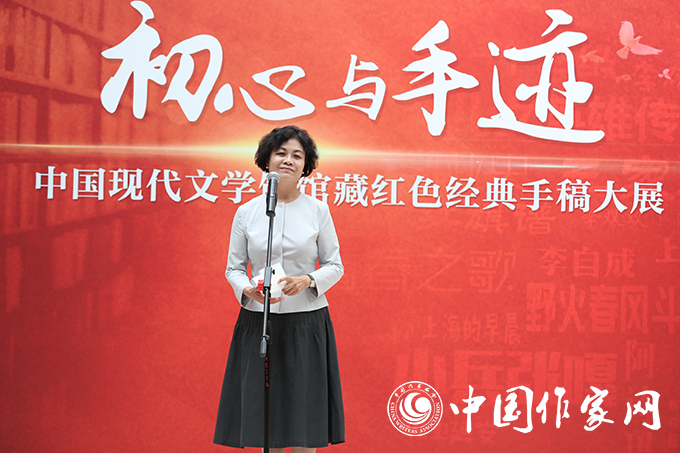 在全國人民歡欣鼓舞,共享中華人民共和國成立70周年偉大榮光的喜慶氛圍里,9月24日,“初心與手跡——中國現(xiàn)代文學(xué)館館藏紅色經(jīng)典手稿大展”在京開幕,以一部部呈現(xiàn)著英雄風(fēng)骨和革命精神的紅色經(jīng)典向新中國的生日獻禮。中國作協(xié)主席鐵凝出席開幕式并宣布展覽開幕。中國作協(xié)黨組書記、副主席錢小芊在開幕式上致辭。中國作協(xié)副主席吉狄馬加、閻晶明,中國作協(xié)書記處書記魯敏出席開幕式。開幕式由中國作協(xié)副主席李敬澤主持。