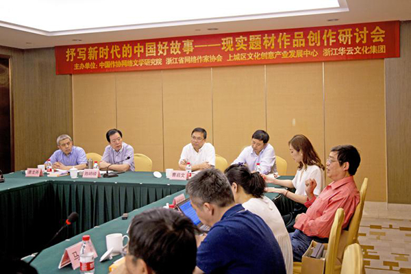 本次研討會由中國作協(xié)網(wǎng)絡(luò)文學(xué)研究院、浙江省網(wǎng)絡(luò)作家協(xié)會、杭州市上城區(qū)文化創(chuàng)意產(chǎn)業(yè)發(fā)展中心、浙江華云文化集團(tuán)聯(lián)合主辦,是第十三屆(2019)杭州文化創(chuàng)意產(chǎn)業(yè)博覽會的重點(diǎn)論壇之一。中國作協(xié)副主席、中國作協(xié)網(wǎng)絡(luò)文學(xué)委員會主任陳崎嶸,中共浙江省委宣傳部文藝處處長劉如文,浙江省作協(xié)副巡視員、黨組副書記、浙江省網(wǎng)絡(luò)作協(xié)主席曹啟文,中共杭州市文聯(lián)黨組成員、副主席唐龍堯,浙江省網(wǎng)絡(luò)作協(xié)副主席、浙江華云文化集團(tuán)董事長汪海英亦應(yīng)邀出席。