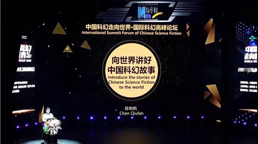 陳楸帆代表八屆星云獎組委會在2017中國科幻走向世界·國際科幻高峰論壇上作題為《向世界講好中國科幻故事》的主旨發(fā)言