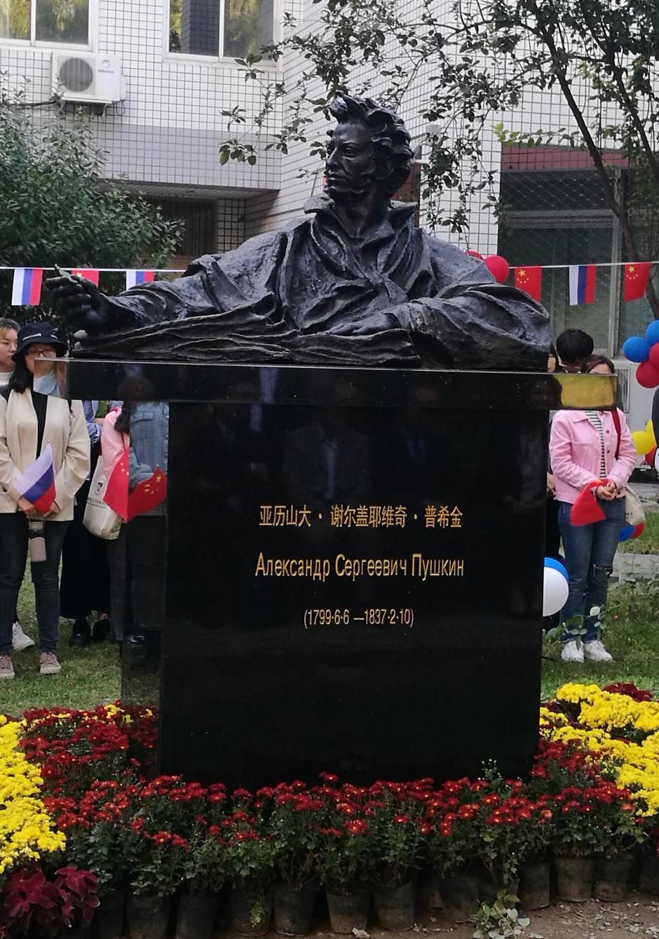 為慶祝中華人民共和國(guó)成立70周年、中俄建交70周年、普希金誕辰220周年及首都師范大學(xué)建校65周年,10月8日,首都師范大學(xué)外語(yǔ)學(xué)院、普希金之家北京分部主辦了普希金雕像揭幕儀式,儀式在首都師范大學(xué)外語(yǔ)學(xué)院秋意盎然的花園中舉行。