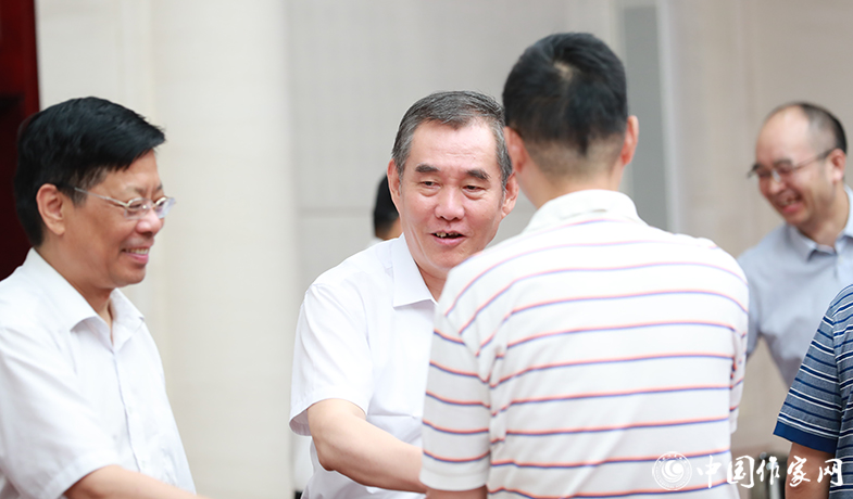 中國作協(xié)黨組書記、副主席錢小芊與評(píng)委親切握手