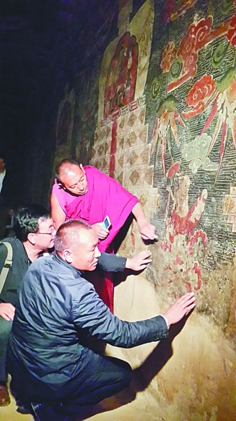 哲蚌寺僧人在與專家一起商討寺內(nèi)壁畫的修復(fù)方案。本報記者李韻攝/光明圖片