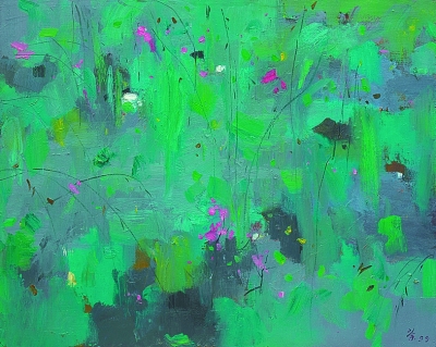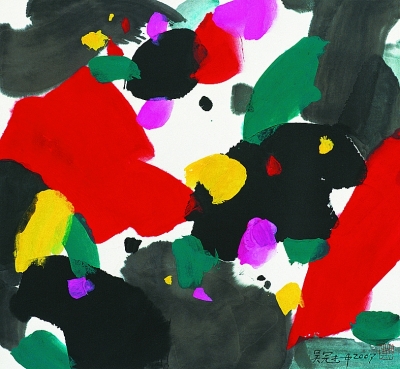 中國(guó)的繪畫,所畫往往不是靜止的形狀,而是正在成形之中的世界,如洛神賦的飄搖,如曹衣吳帶的水風(fēng)飄忽,如宋元山水的玄遠(yuǎn)清虛的境界,如梅蘭竹菊亦影亦神的意寫。它并不虛擬另外一個(gè)世界,而是不斷地帶著我們回溯某個(gè)可見(jiàn)的源頭,從那里面對(duì)晦明之間、有形與無(wú)形之間、可見(jiàn)與不可見(jiàn)之間、此刻與恒永之間的萬(wàn)千意象,繪畫的意象正隱匿或浮現(xiàn)在這漫無(wú)涯際的“之間”的間性之中。藝者的使命就是義無(wú)反顧地涉入其中,發(fā)力鑿開(kāi)這混沌的一片,讓生命的意象悄然顯身。吳先生深諳東方藝者的這份特性,真實(shí)地站在大地上,沉醉于“祖國(guó)之土”的呼吸吐納,依著他的艱辛而豐饒的人生經(jīng)歷,依著他的超拔的心靈與精神自由,在生命的持續(xù)危難中閱讀“間性”的氣象,鑄煉詩(shī)的啟蒙與超越。吳先生的藝術(shù)為“后繪畫”時(shí)代的世界藝堂提供了某種源于東方又不止于地域性的“間性”的典型。這正是吳先生藝術(shù)的內(nèi)涵,正是吳先生自比趙無(wú)極先生絕無(wú)愧色、而世界也同樣選擇了吳先生的底氣。吳先生秉著這種“間性”的韻息和敏銳,建構(gòu)起他的詩(shī)性的田園。這個(gè)田園風(fēng)箏不斷線,始終存留著東方式的直觀和意態(tài),以避免樣式的模仿與空泛。這個(gè)田園不承認(rèn)沒(méi)有內(nèi)容的筆墨,以放骸的揮灑引領(lǐng)時(shí)代新風(fēng)。這個(gè)田園將人生的苦情與藝術(shù)的苦心煮在一起,熬成一份有些苦味、卻沁人心脾的畫卷。