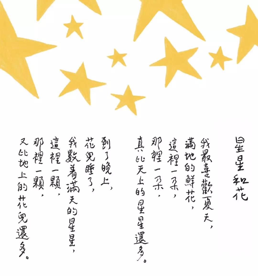 就在那一次座談會(huì)上,他大膽地發(fā)言。他問(wèn)我:“爺爺,請(qǐng)你告訴我,到底是天上的星星多呢,還是地上的花兒多呢?”我知道,他是讀了我的一首短詩(shī),才這樣發(fā)問(wèn)的。我的那首詩(shī),題目是《星星和花》,詩(shī)里有這樣的句子:
