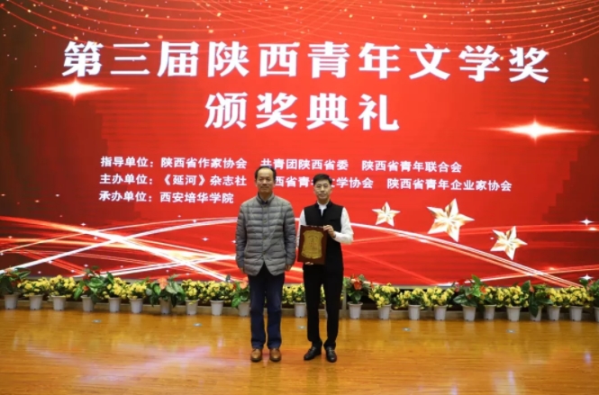 10月25日,第三屆陜西青年文學(xué)獎(jiǎng)?lì)C獎(jiǎng)典禮在西安培華學(xué)院舉行。此次活動(dòng)由陜西省作家協(xié)會(huì)、共青團(tuán)陜西省委、陜西省青年聯(lián)合會(huì)指導(dǎo),《延河》雜志社、陜西省青年文學(xué)協(xié)會(huì)、陜西省青年企業(yè)家協(xié)會(huì)主辦,西安培華學(xué)院承辦。現(xiàn)場(chǎng)頒發(fā)了貢獻(xiàn)獎(jiǎng)、中短篇小說(shuō)獎(jiǎng)、散文獎(jiǎng)、詩(shī)歌獎(jiǎng)、評(píng)論獎(jiǎng)、網(wǎng)絡(luò)文學(xué)獎(jiǎng)、校園文學(xué)獎(jiǎng)等七大獎(jiǎng)項(xiàng)的主獎(jiǎng)和提名獎(jiǎng),肖云儒、劉尚海、楊則緯、丁小龍、馬鵬波、王潔、龐潔、韓偉、陳樸、風(fēng)圣大鵬、楚清、田凌云、王安憶佳等13人獲獎(jiǎng)。