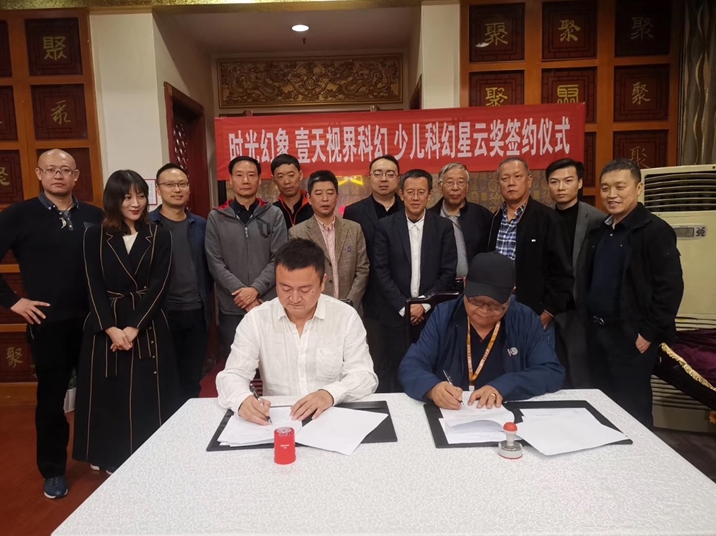 為了促進(jìn)中國少兒科幻文學(xué)和產(chǎn)業(yè)的發(fā)展,10月25日晚,時(shí)光幻象公司與壹天視界科幻公司簽署了聯(lián)合興辦“少兒科幻星云獎(jiǎng)”的協(xié)議。10月26日晚,召開了“首屆少兒科幻星云獎(jiǎng)籌備會(huì)”,成立了首屆少兒科幻星云獎(jiǎng)組委會(huì)。