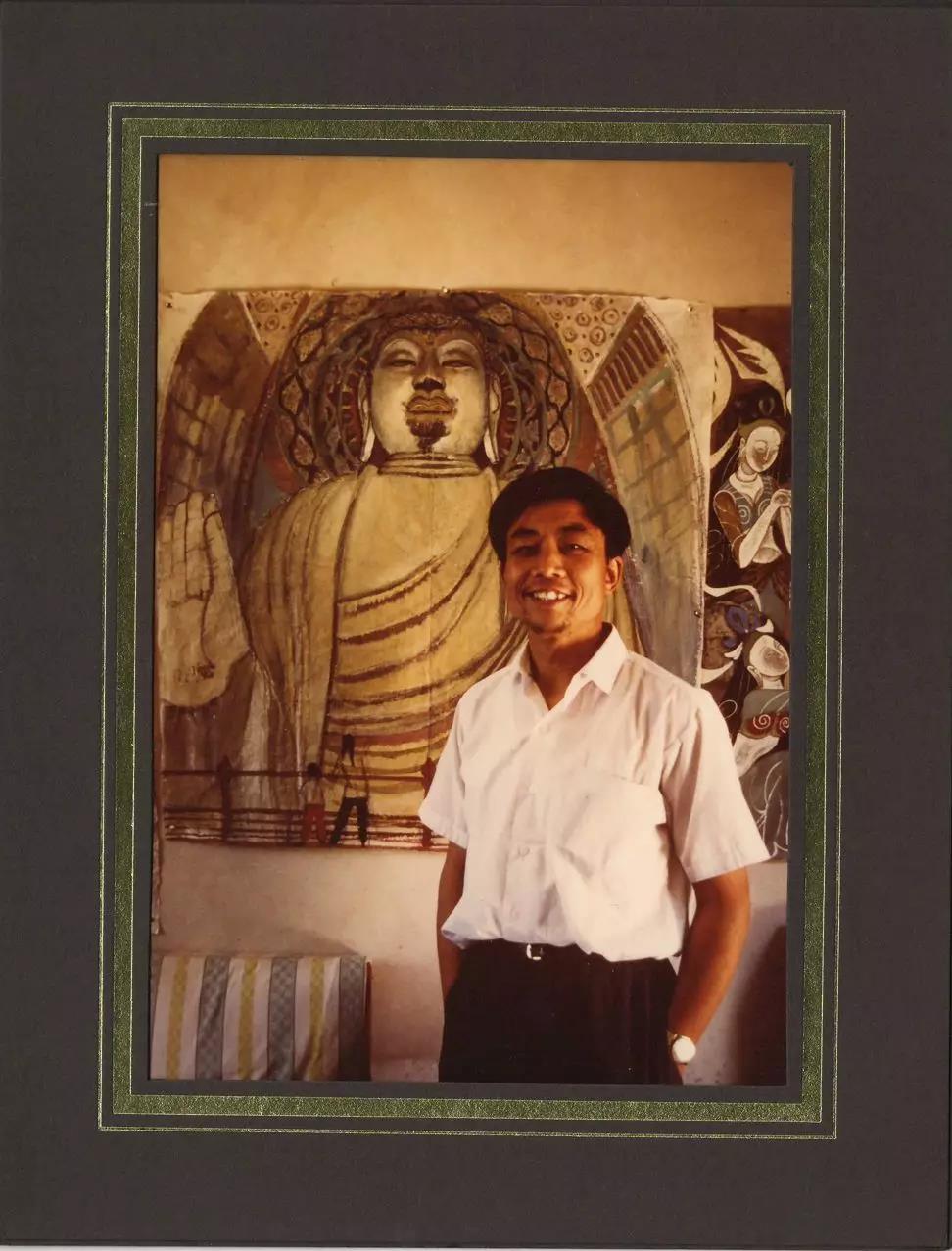 有一次,我和胡永凱先生背著畫夾子和顏料盒到處轉(zhuǎn),從敦煌最中心的地帶往北邊走,發(fā)現(xiàn)半山腰有幾個(gè)大洞,我們手腳并用地鉆進(jìn)去一看,原來是明朝西藏喇嘛們畫的密宗洞。里面金碧輝煌,卻有一個(gè)非常矮的洞,只有兩三個(gè)平米,空空的?;厝ヒ院笪覇柟芾韱T,他們告訴我,小洞是當(dāng)年那些畫家們居住的地方。第二天,我又去了洞里,在小洞里躺了一會(huì)兒,慢慢閉上眼睛。我是在和古代的畫家們進(jìn)行對(duì)話。人的生命是有限的,但藝術(shù)是永存的,如果沒有那些畫家艱辛的創(chuàng)作和繪畫,今天的我們就沒有敦煌藝術(shù)。